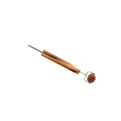Das 2-in-1-Werkzeug für eine Tonabnahme. Erkennen Sie mit der feinen Spitze, stimulieren Sie dann intensiv mit dem strukturierten Hornball, um "Kratzen" und mobilisieren Sie den Qi.